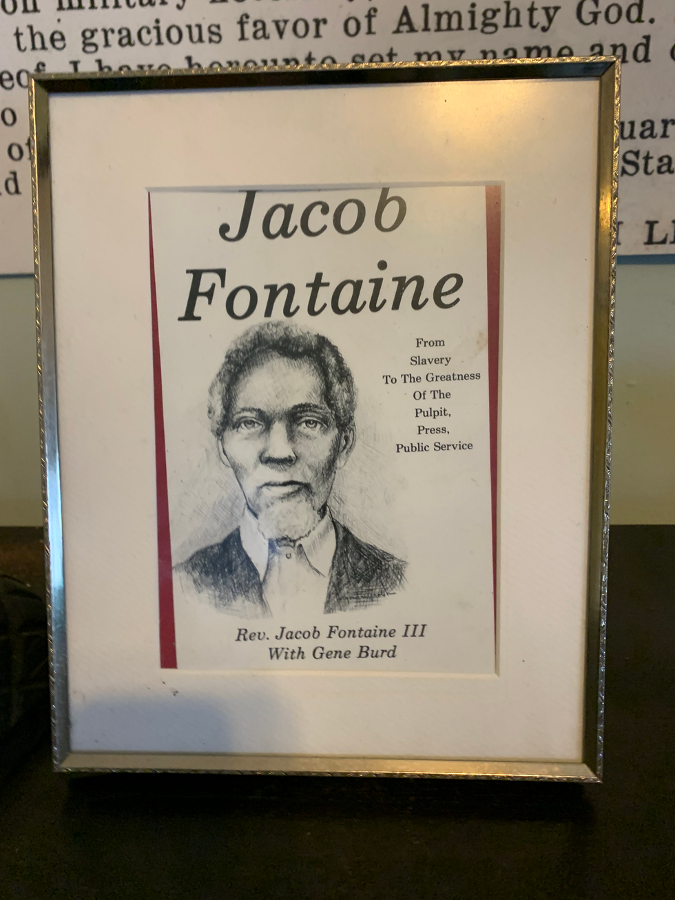 This project features framed vintage graduation portraits, historical markers, and documents with historical text, honoring the service and contributions of historical figures.